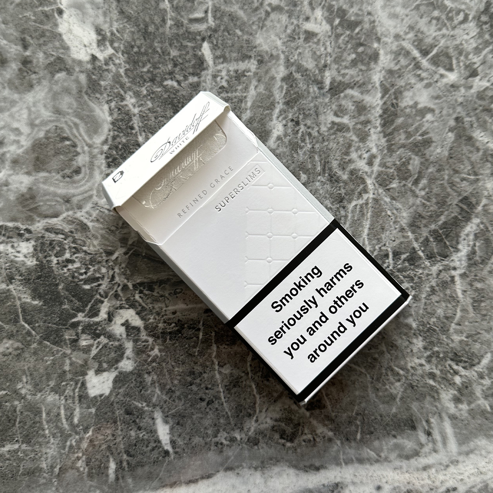 Davidoff White SuperSlims is a variant within the Davidoff cigarette lineup characterized by an exceptionally slender (super slim) format and an ultra-light delivery of tobacco smoke. It is positioned toward smokers seeking a milder experience compared with regular diameter cigarettes and typically contains lower measured levels of nicotine and tar. This variant differs from standard cigarettes primarily in its physical size (super slim diameter) and lighter strength profile.
